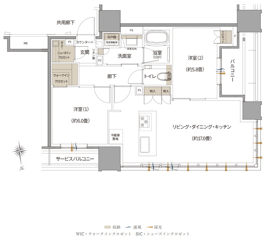 本物件では60㎡台で49部屋の角部屋が用意されているため、